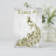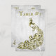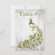 Number your reception tables with a Gold Peacock Leaf Vine Wedding Reception table card. Table card design features a light grey grunge background with a vibrant gold peacock with a leaf vine embellishment. Additional wedding stationery available with this design as well.