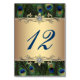 Peacock wedding table cards with pretty gold band on a gorgeous emerald green and blue peacock background. These elegant peacock table cards are easily customised for your event by adding your details in the font style of your choice. This is a printed design with no real feathers, jewels, etc.