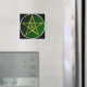 A gold pentacle/ pentagram on a green background with a triqueta in the heart of the pentacle. Gorgeous. The pentacle and triquetra have long been symbols of the Wiccan belief system and of the neo-paganism.