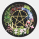 Gold Pentacle Nature Wreath Flowers Bohemian Classic Round Sticker