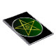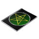 A gold pentacle/ pentagram on a green background with a triqueta in the heart of the pentacle. Gorgeous. The pentacle and triquetra have long been symbols of the Wiccan belief system and of the neo-paganism.