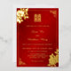 This traditional Chinese wedding invitation features a real gold foil double happiness symbol, Chinese peony flowers and a real gold foil text in a handwritten script and a modern sans serif font.