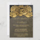 This customisable virtual long distance livestream wedding invitation features gold paper peonies on a black gradient background gold and black text framed area. Just add your details to give it a custom feel and voila!