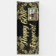 Easily upload your photo for a one of a kind banner. Pretty gold and black festive personalised birthday party banner wall decoration. Outstanding birthday banner custom printed with the guest of honour men or women's name! Black and Gold fairy dust, bokeh and rays of light to celebrate the guest of honour's special milestone birthday!