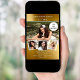 Create your own unique photo collage. Use four, 4 of your favourite photos. Personalise and add a name and party details. A faux gold looking background, white text.