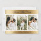 Elegant gold wedding photo save the date card featuring a multi photo collage on a gold background.