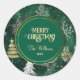 Gold Pine trees Silver Snowflakes Hunter Green Classic Round Sticker