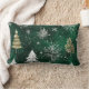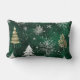Gold Pine trees Silver Snowflakes Hunter Green Lumbar Cushion