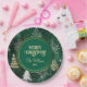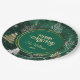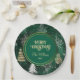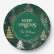 Gold Pine trees Silver Snowflakes Hunter Green Paper Plate