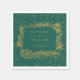 Gold pine frame with cone confetti evergreen winter Christmas wedding paper napkin. A lovely wedding design that includes a gold pine frame with cone and needles and gold confetti borders on evergreen green background.
