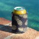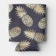 Fun summer can cooler featuring faux gold pineapples on black background