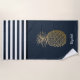 Gold Pineapple Nautical Navy Blue Striped Beach Towel