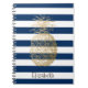 This image features gold pineapple on navy blue stripes. Personalise the name for yourself or as a cute gift idea.
