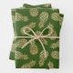 Gold Pineapples on Green Wrapping Paper Sheet