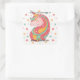 Magical unicorn in three colours - coral, gold and mint green. Stars in the background. Above "This is the property of" and at bottom "Barb Johnson". All text is easily changed
