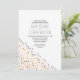 contemporary clean and simple engagement party invitation with navy blue, pink and gold mate foil faux confetti dots. Please note that this design does not use any physical gold glitter confetti it will be printed the way you see it on your computer screen.