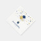 Add a personal touch to your special day with this cute boy Birthday Paper Napkin! This design features stylish balloons and a mason jar with confetti in gold & navy blue. You can customise the text to any event or different age. More matching invitations and party supplies are available in my shop BaraBomDesign.