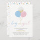 Celebrate a special day for your loved one with this cute baby shower invitation! This design features stylish golden typography "boy or girl" with balloons and confetti in pink, light blue, grey, and gold colour combo. Match your invitation with your baby shower decorations. Perfect invitation for a gender reveal baby shower or baby sprinkle. If you need a custom colour or design, please contact me via email (barabomdesign@gmail.com).