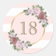 Elegant blush and white striped floral custom number round sticker. Easily personalise online.