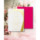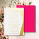 A modern formal Wedding Rehearsal Dinner invitation. The invitation is in bright deep pink and gold foil.