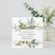 Chic botanical design features a wide leafy border at the top and bottom of this square invitation. Several shades of green and blue leaves and vines give it a Boho Chic vibe. Your wedding details are in the centre in a combination of upright and italics text. A deep green watercolor wash with golden accents covers the wedding invitation back. There is just a touch of pink floral A thin gold frame creates an elegant band effect. This wedding invitation is part of the Gold Botanical collection. It contains the DIY templates you need to create your wedding stationery set. You should see a link to the collection on this page. If you don't see the link or you need help finding an item, please contact me. h