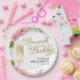 Gold Pink Floral Brunch And Bubbly Bridal Shower Paper Plate