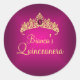 Quinceanera Sticker. Pink & gold. Elegant gem tiara & gold damask. Please note: All flat images!