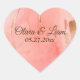 Gold Pink Peach Brown Name Date Elegant Wedding Heart Sticker