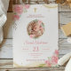 Gold Pink Rose Floral Photo Baptism Christening Invitation