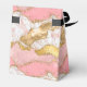This elegant and glamourous sweet sixteen birthday party thank you favour box features a pink and white agate marble background with faux gold glitter accents. The text combines handwritten script and modern sans serif fonts for a classy and sophisticated look. The sequins and distressed texture creates the perfect blend of chic and grunge.