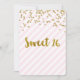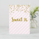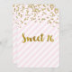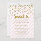 Custom 16th Birthday party invitations in light pastel blush pink and white stripes pattern with gold confetti and hand lettered style text. Add your name and party details for a unique and stylish sweet 16 birthday party invitation.