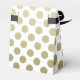 Large polka dot design on white. The dots are a subdued gold colour that goes from a dark hue at the bottom of the bag to a very faint shade at the top flap. Available in different background colours. Click on the "Customise it!" button for more options. Artwork and design by Karlajkitty