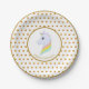 Beautiful paper plate with elegant gold polka dots and unicorn with personalised text: "Magical Celebration". Ideal for all celebrations.