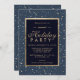 Gold polka dots navy blue winter corporate holiday invitation