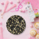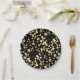 Gold polka dots on a black background . paper plat paper plate