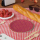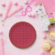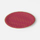 Beautiful paper plate with elegant gold polka dots framed with a golden circle on red burgundy background. Ideal for all celebrations.