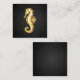 Artistic, polygonal, seahorse of sparkling, gold foil on black background.