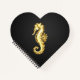 Artistic, polygonal, seahorse of sparkling, gold foil on black background.