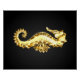Artistic, polygonal, seahorse of sparkling, gold foil on black background.