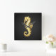 Artistic, polygonal, seahorse of sparkling, gold foil on black background.