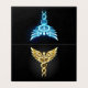 Gold polygonal Caduceus symbols on black isolated background. Low poly symbol of medicine.