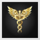 Gold polygonal Caduceus symbols on black isolated background. Low poly symbol of medicine.