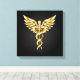 Gold polygonal Caduceus symbols on black isolated background. Low poly symbol of medicine.