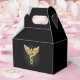 Gold polygonal Caduceus symbols on black isolated background. Low poly symbol of medicine.