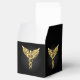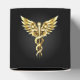 Gold polygonal Caduceus symbols on black isolated background. Low poly symbol of medicine.