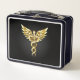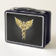 Gold Polygonal Symbol Caduceus Metal Lunch Box