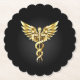 Gold Polygonal Symbol Caduceus Paper Coaster