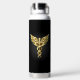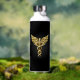 Gold polygonal Caduceus symbols on black isolated background. Low poly symbol of medicine.
