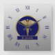 Gold Professional Medical Caduceus Blue Name Square Wall Clock