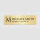 This name tag features monogram, name and title in black professional serif font style on gold background.